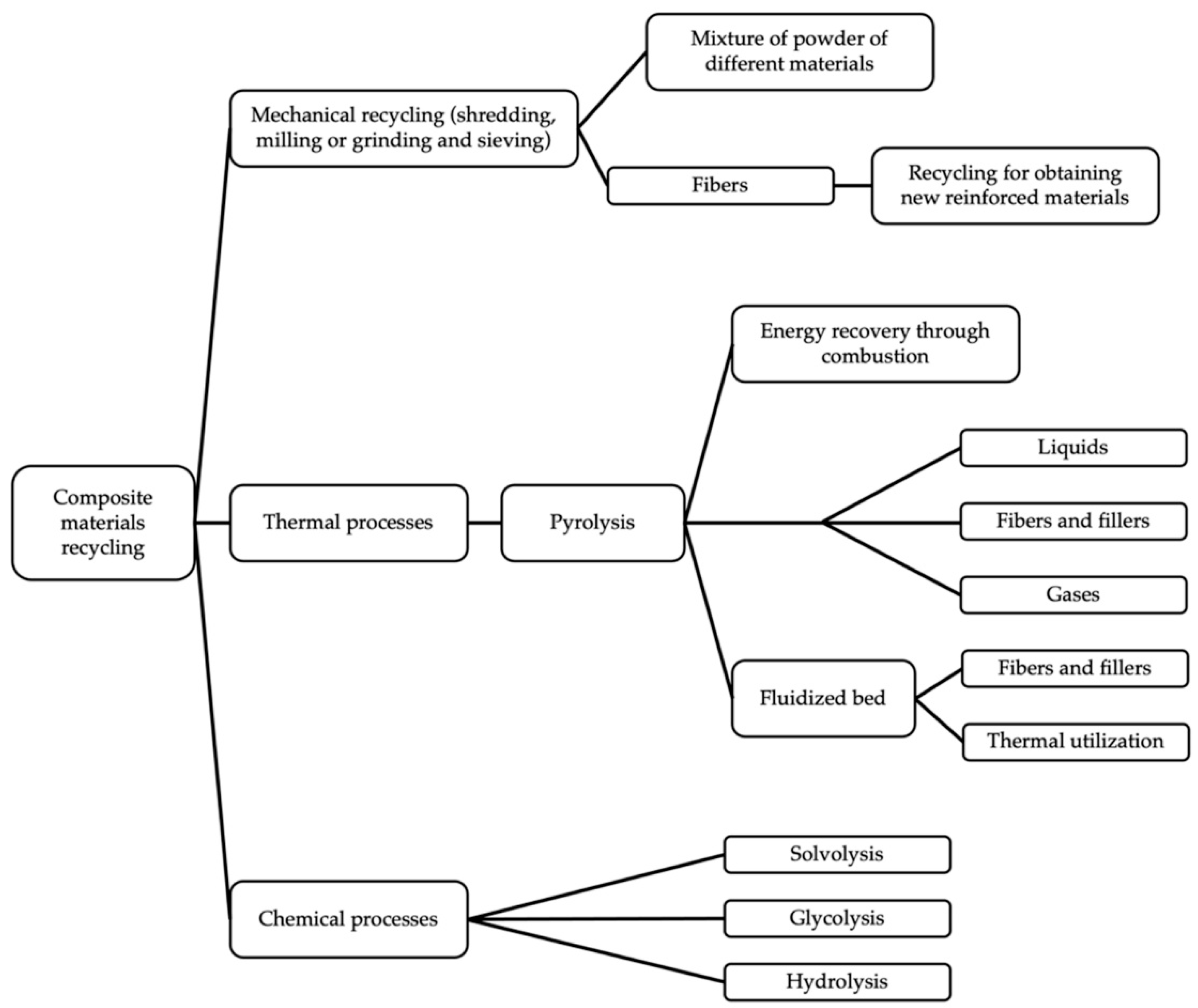 - Butenegro, J.A.; Bahrami, M.; Abenojar, J.; Martínez, M.Á. Recent Progress in Carbon Fiber Reinforced Polymers Recycling: A Review of Recycling Methods and Reuse of Carbon Fibers. Materials 2021, 14, 6401. [Google Scholar] [CrossRef] [PubMed]