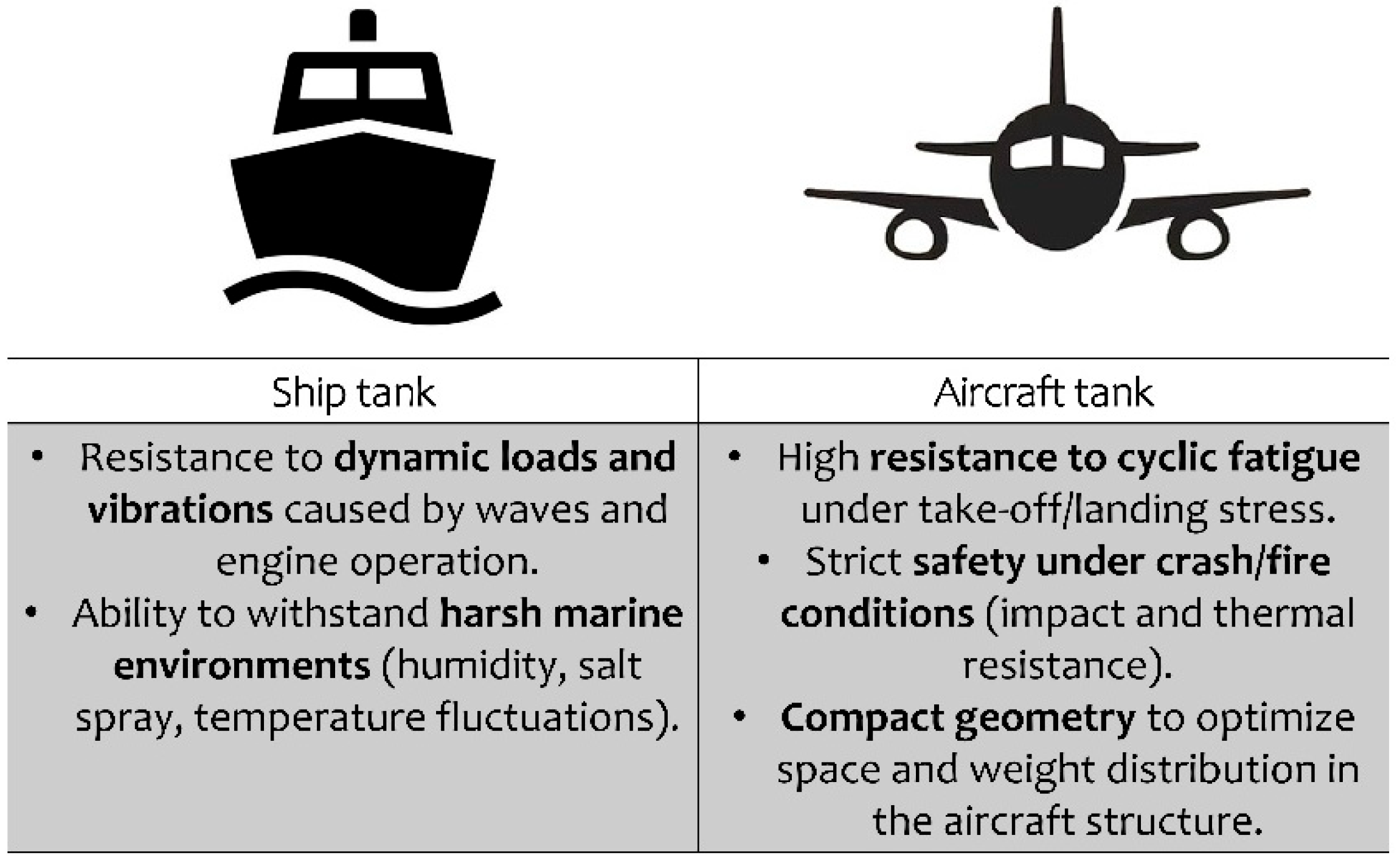 Structural Strength and Adhesion | Tank integrity depends on liner–composite bonding and fiber–resin performance. | Delamination, microcracks, creep and adhesion loss. | Enhancing bonding with nanoparticles, multilayer concepts and stricter manufacturing control. |