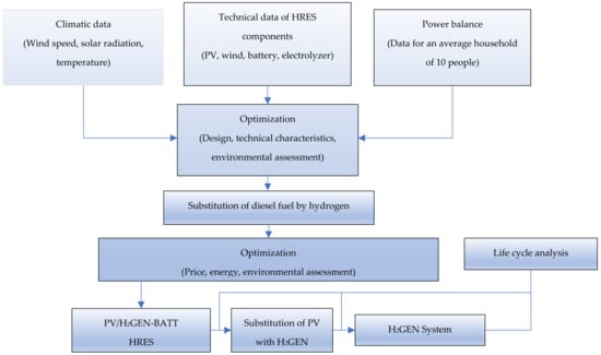 Hybrid PV/DG-BATT HRESs are systems that produce significant amounts of greenhouse gases. Environmental protection objectives aim for near-zero greenhouse gas production. The most suitable energy sources for meeting these criteria are renewable energy sources, in general, and hydrogen generators in particular.