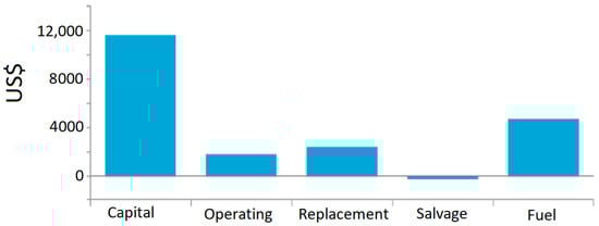 Cost summary of Net Present Cost by components (Homer Pro software).