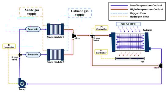 - Woo, J.; Kim, Y.; Yu, S. Cooling-System Configurations of a Dual-Stack Fuel-Cell System for Medium-Duty Trucks. Energies 2023, 16, 2301. [Google Scholar] [CrossRef]