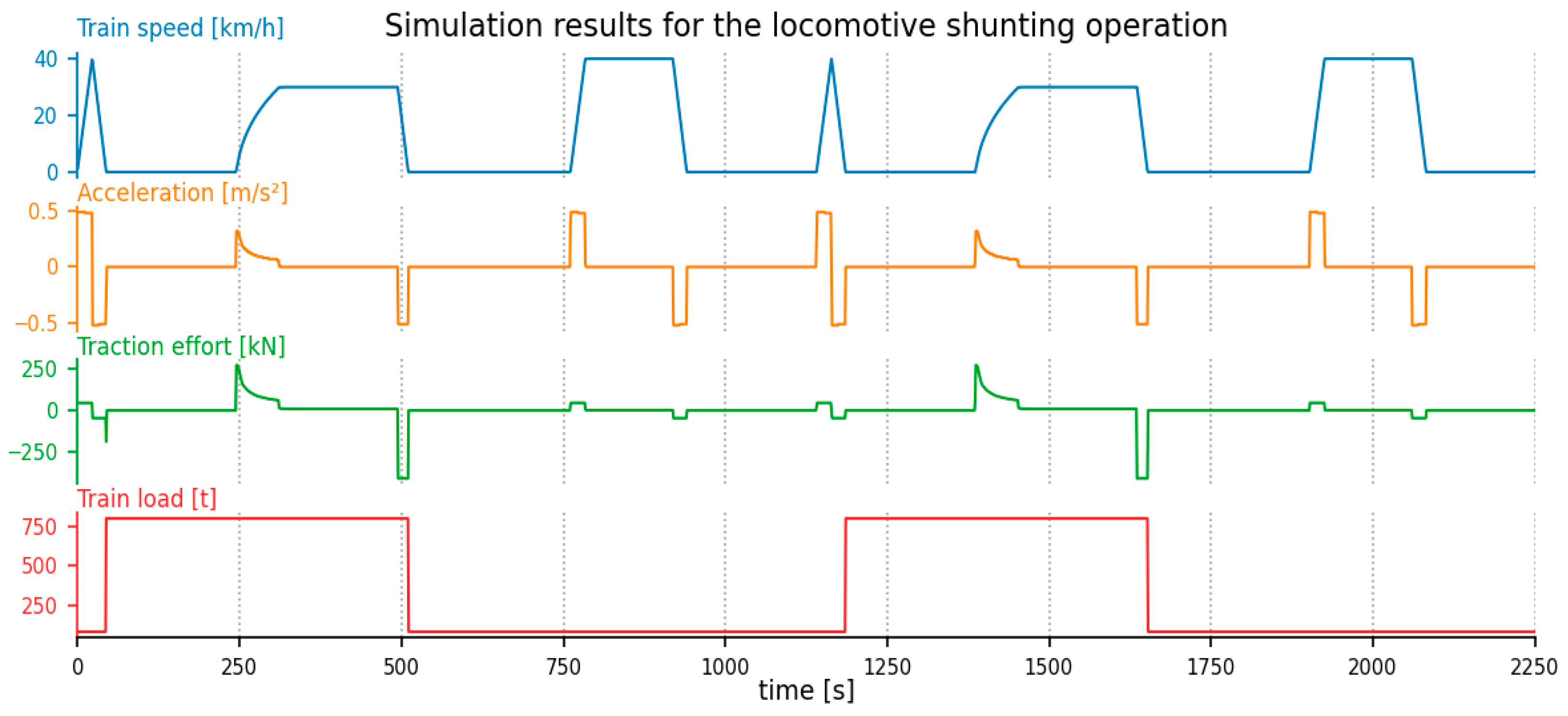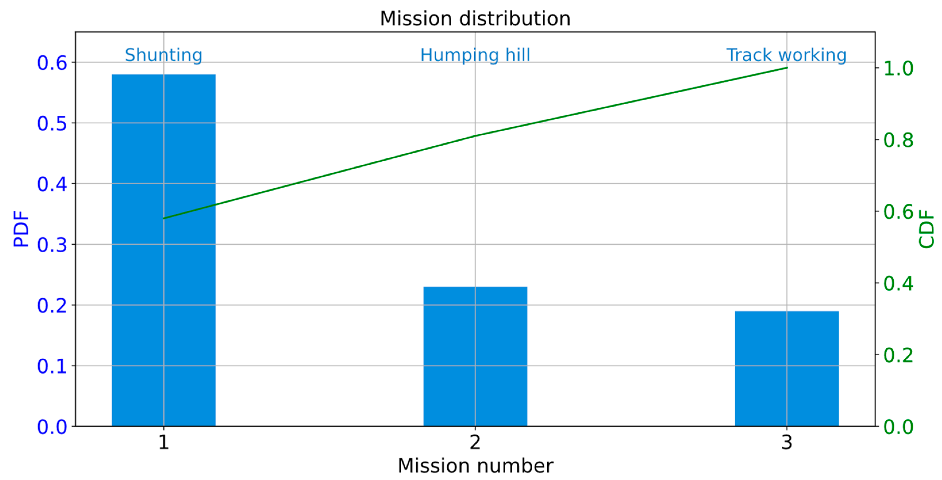 As already mentioned, the shunting locomotive may be assigned a wide variety of missions. For instance, the weight of the wagons it hauls can range from a few hundred tons up to 2000 tons, as is the case for the locomotive under study. Moreover, the load hauled is often unpredictable. The diversity and randomness of these missions necessitate a robust energy management system capable of handling the full range of operational scenarios to ensure optimal locomotive performance.