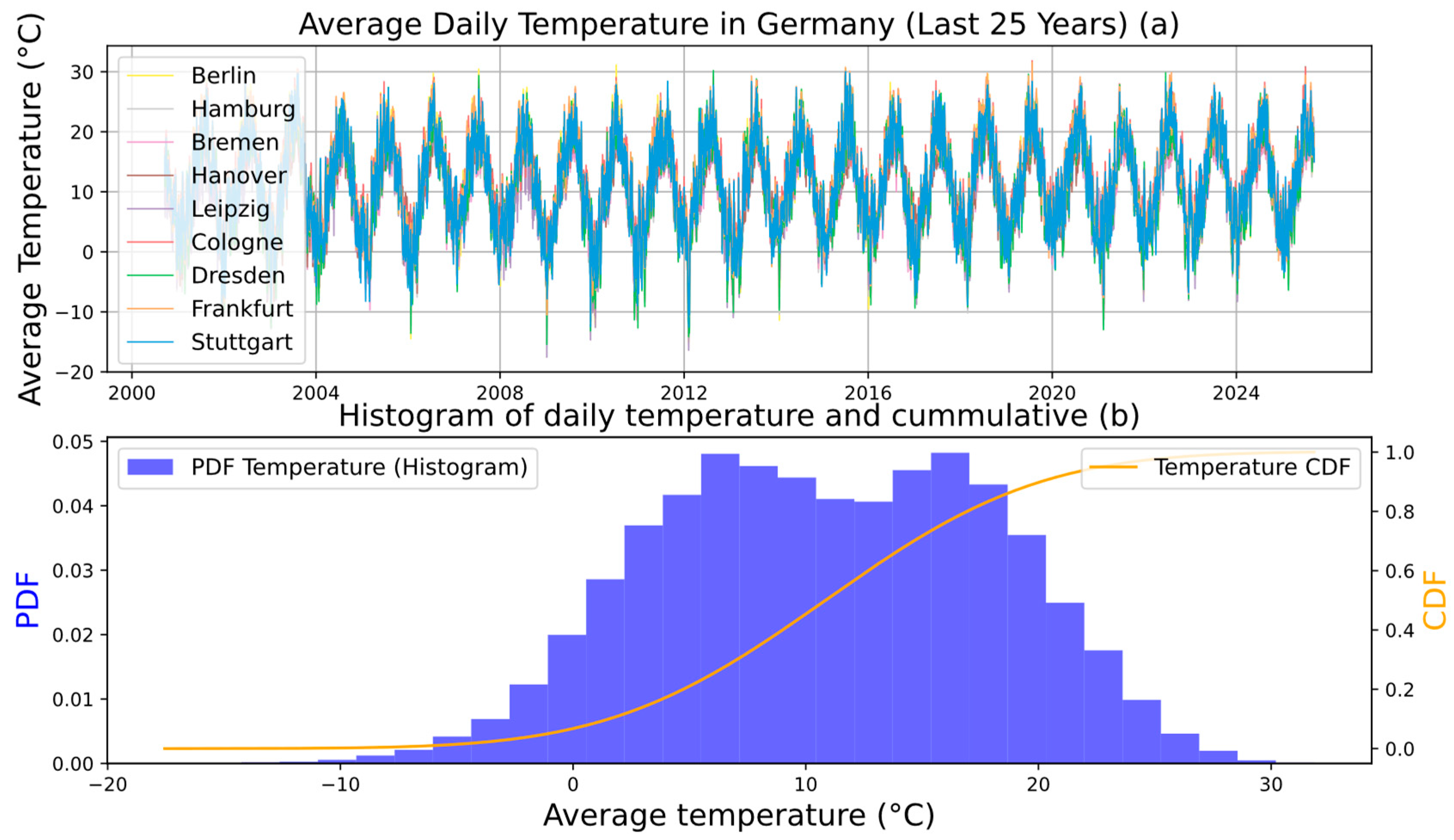 The locomotive is designed to run in all of Germany. To consider the climatic conditions of Germany, we have extracted meteorological data for the last 25 years from Meteostats [