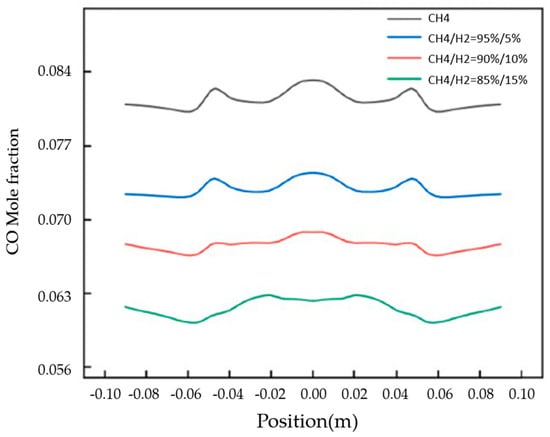 CO mole fraction distribution at the exit of fire holes for different concentrations of hydrogen (Reprinted with permission from [10]).