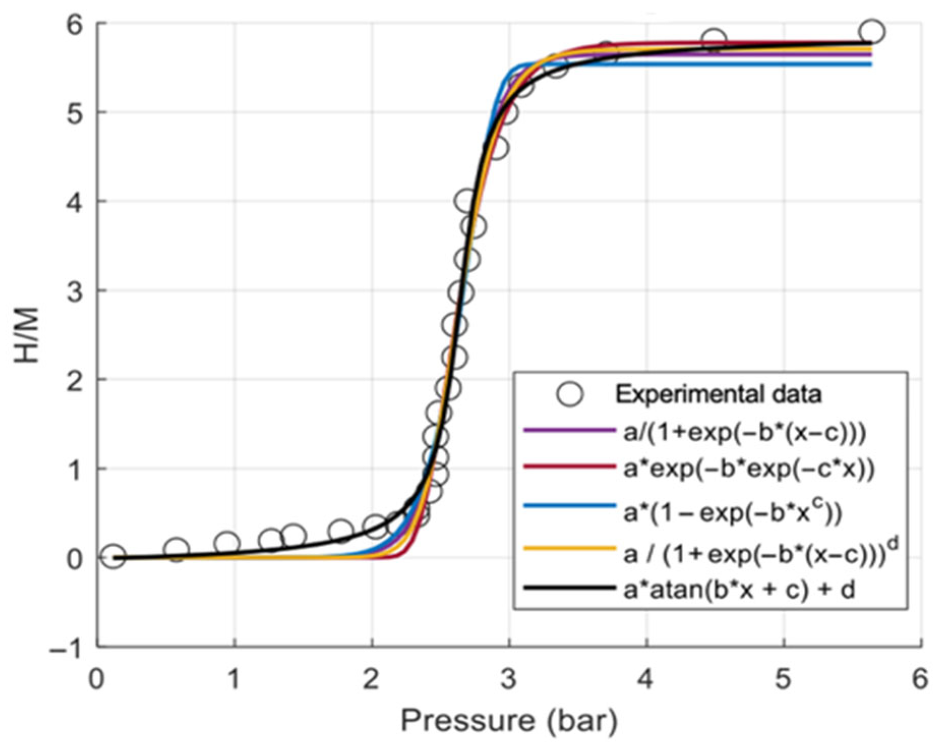 - Dhaou, H.; Askri, F.; Ben Salah, M.; Jemni, A.; Ben Nasrallah, S.; Lamloumi, J. Measurement and Modelling of Kinetics of Hydrogen Sorption by LaNi5 and Two Related Pseudobinary Compounds. Int. J. Hydrogen Energy 2007, 32, 576–587. [Google Scholar] [CrossRef]