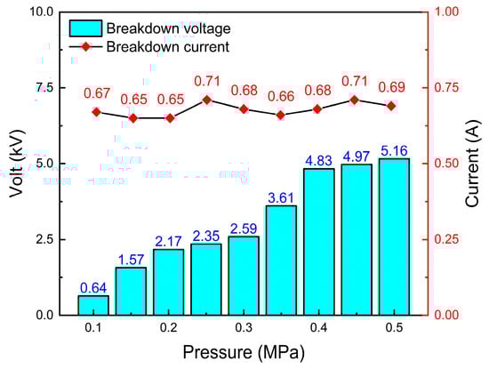 Pulse discharge voltage–current curve under 0.2 MPa.