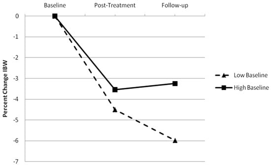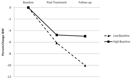 3.1. Weight Change at Post-Treatment and Follow-Up