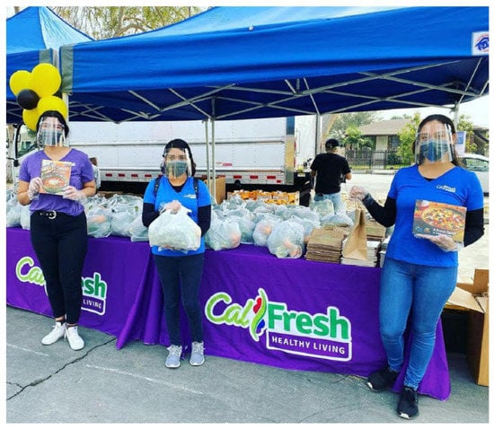 This evaluation study is among the first to show that even in emergency situations, food pantries and community-based settings can and should play a critical role in providing free and nutritious food to households that are or have become food insecure due to a public health crisis. A unique aspect of the local SNAP-Ed program was that DPH facilitated partnerships between community-based organizations and community-based settings (K-8, early childhood education programs, and healthcare clinics) to distribute recovered surplus food and produce. Nutrition education and health messaging were also offered at these events—the education included distributing cookbooks and disseminating health messages using pop-up banners. Recognizing that F+V are perishable, and if such a choice/selection is made available at events, nutrition education can additionally help participants with their choices, potentially increasing their likelihood of purchasing and consuming more fresh produce. Another important dimension of the LAC effort is the distribution of food with staff and at sites that the program participants were familiar with and had interacted with on a regular basis. The addition of non-traditional sites complemented the work of the food pantries; they provided unique roles within the community relative to other food initiatives [].