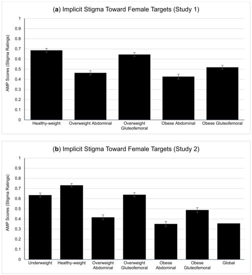 To the best of our knowledge, however, no work has yet explored whether implicit fat stigma is sensitive to women’s (or men’s) body shapes as well as sizes. Here, we use the AMP to investigate whether implicit stigma follows the same shape-sensitive pattern of explicit fat stigma in previous work—that, for example, two women targets that are overweight are differently stigmatized when one has fat primarily in her abdomen and the other in her hips and thighs.