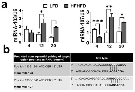 3.3. Upregulation of miRNA-103/107 Expression in HFHFD-Fed Mice