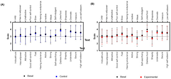 Figure 2. Distribution of F-scale scores according to a cut-off indicating neutral/positive or negative attitudes towards obesity after lecture. (A) Control group. (B) Experimental group. * represents statistical significance p ≤ 0.05.