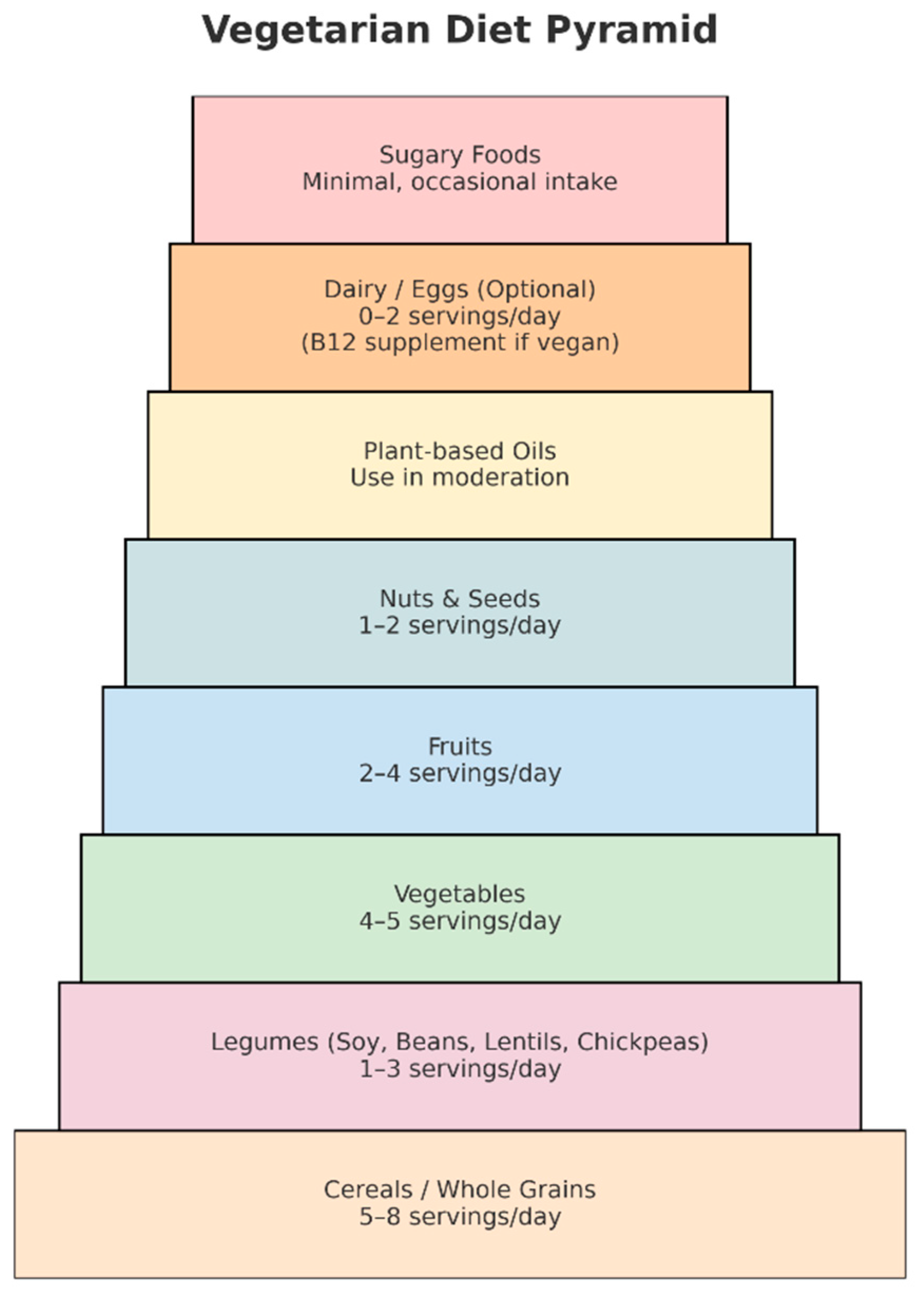 - Dairy/Eggs (Optional): 0–2 servings/day; for vegan diets, ensure vitamin B12 supplementation;