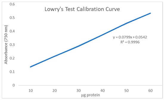 Lowry’s test calibration curve (absorbance vs. μg protein).