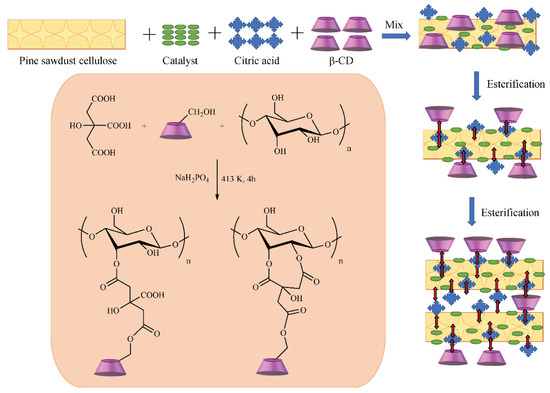 Pine sawdust modified with β-CD. Adapted with permission from [106]. Copyright (2020) American Chemical Society.