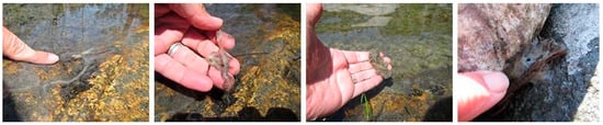 - Žuljević, A.; Kaleb, S.; Peña, V.; Despalatović, M.; Cvitković, I.; De Clerck, O.; Le Gall, L.; Falace, A.; Vita, F.; Braga, J.C.; et al. First freshwater coralline alga and the role of local features in a major biome transition. Sci. Rep. 2016, 6, 19642. [Google Scholar] [CrossRef] [PubMed]