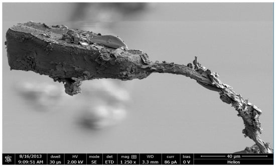 SEM image of Didymo siliceous cell tightly bound to the biomineralized polysaccharides-based stalk.