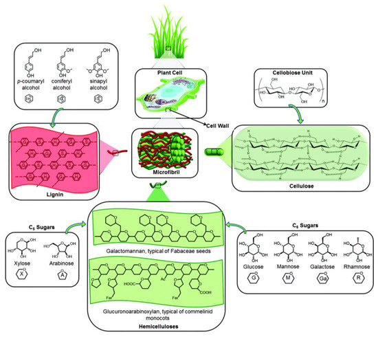 Main structural components of a lignocellulosic material (reproduced from Isikgor and Becer [14] with permission from the Royal Society of Chemistry, 2015).