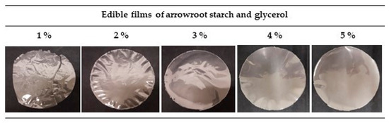 Images of the films with different concentrations of arrowroot starch in film-forming solution.