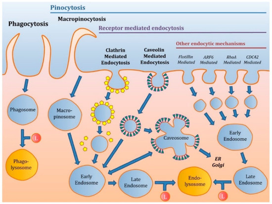Different mechanisms of endocytosis. Adapted from [76]. Open access.