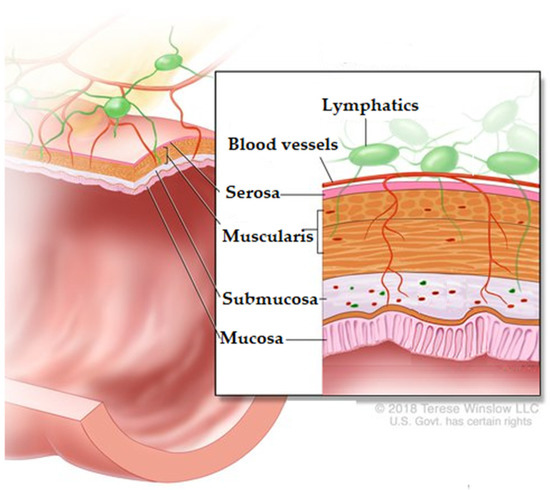 Histological layers of the colon. Adapted from [93]. Rights holder: © (2021) Terese Winslow LLC, U.S. Govt. has certain rights.