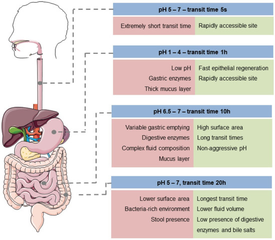 Conditions in the GI tract. Reprinted by permission from John Wiley and Sons [103] Copyright (2021).