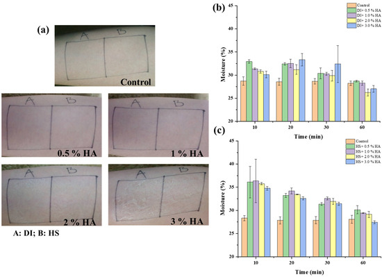 3.2. Incorporation of HS Water in Combination with HA as a Moisturizing Agent
