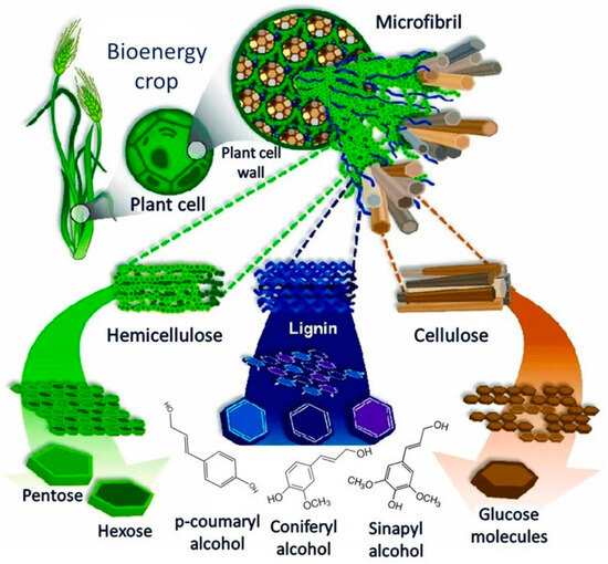Structural hierarchy of a plant fiber. The figure was obtained under the Creative Common BY License [12].