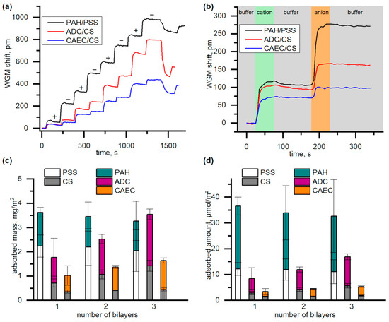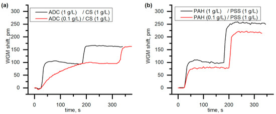 2.2.1. Evaluation of the Polyelectrolyte Layer-by-Layer (LbL) Assembling by Means of Whispering Gallery Mode (WGM) Experiments
