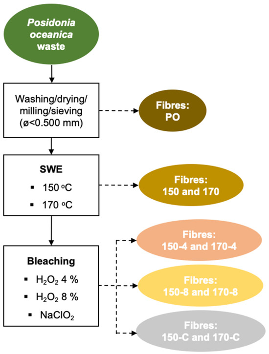 Flow chart of the process applied to obtain different lignocellulosic fibres from Posidonia oceanica waste.