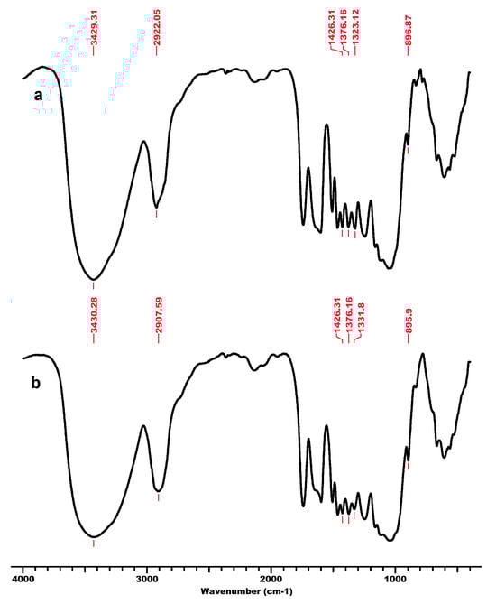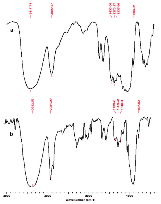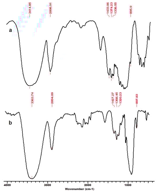 FT-IR spectra for microcrystalline cellulose MCC, initial (a) and after regeneration process in ionic liquid [EMIM]Cl–MCC_r (b). Permission to re-draw and reuse figures obtained from Romanian Academy, copyright holder [125].