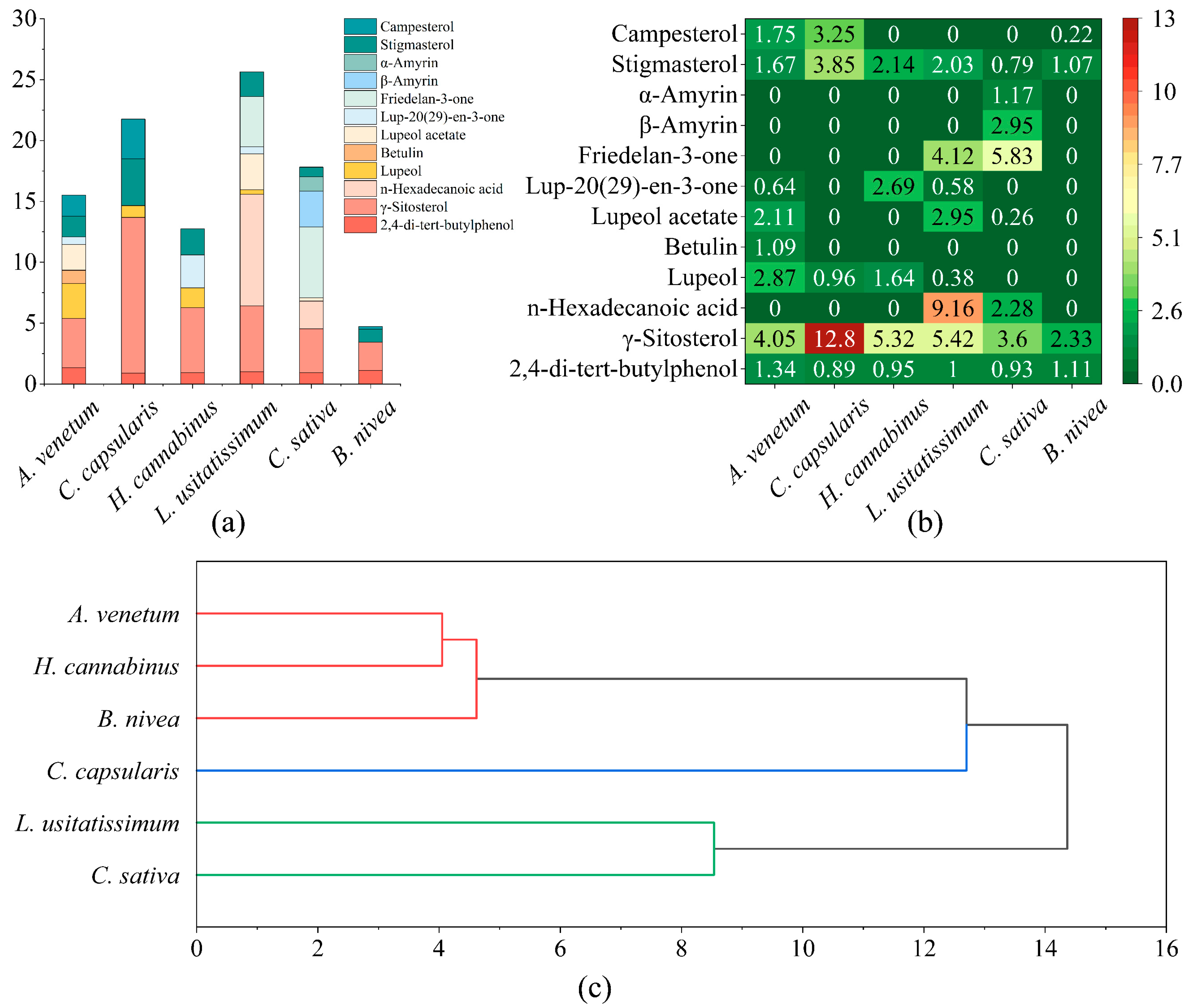 | Lupeol | 2.87 | 0.96 | 1.64 | 0.38 | 0 | 0 | |