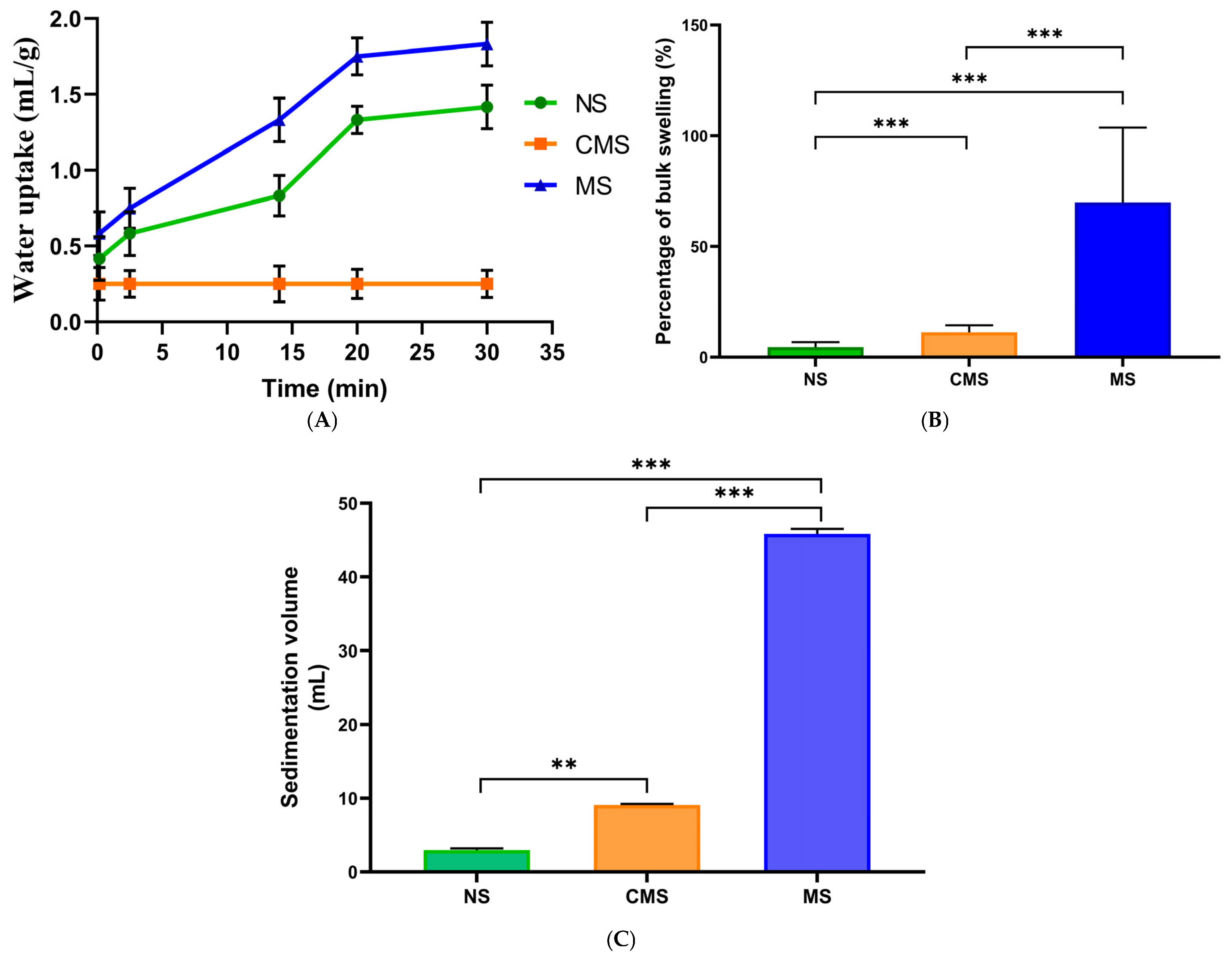 - Atuchukwu, E.; Adedokun, M.; Emeje, M. Synthesis, Characterization, and Functional Properties of a Novel Sodium Carboxymethyl Starch Obtained from Matured Seeds of Brachystegia eurycoma. Egypt. Pharm. J. 2021, 20, 145–156. [Google Scholar] [CrossRef]