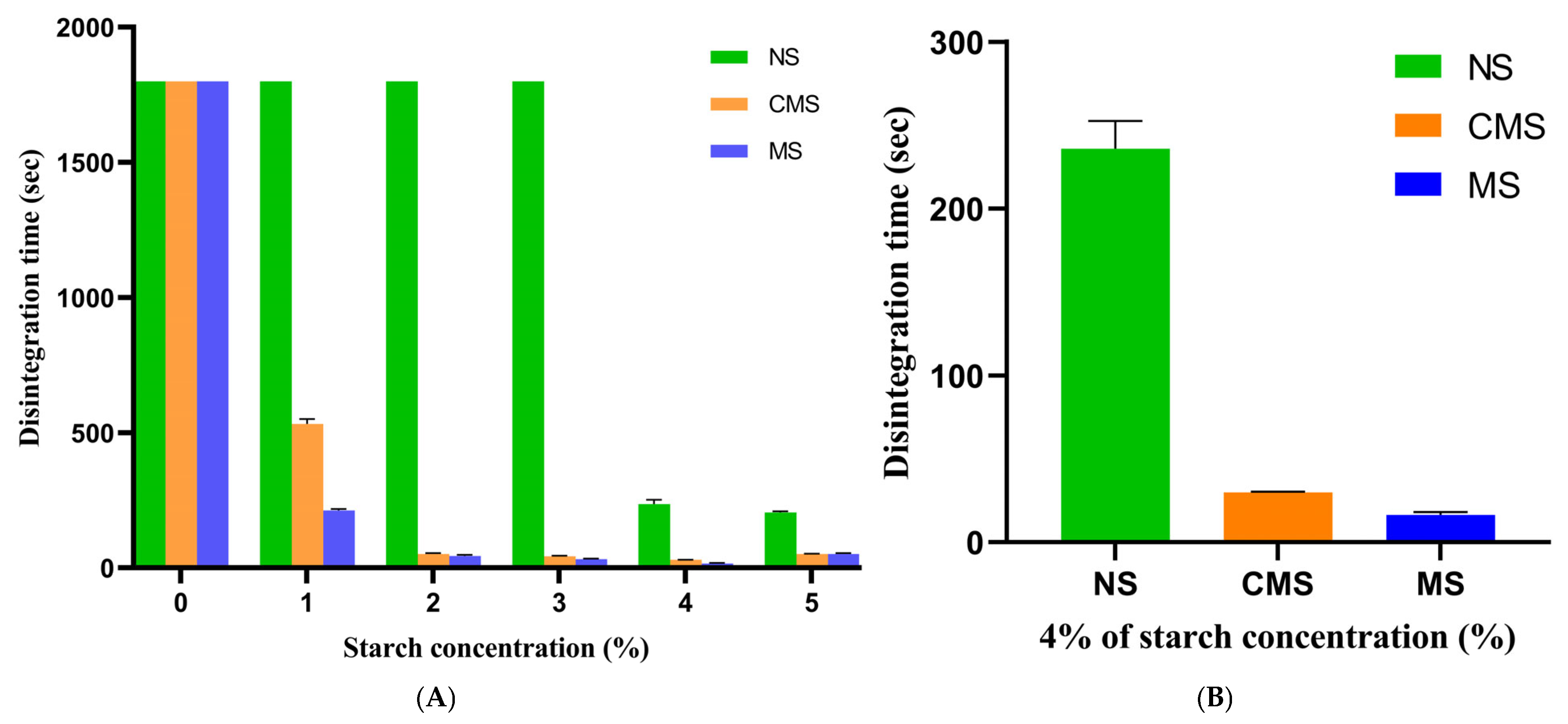 2.4.3. Efficacy of Disintegration in Paracetamol Tablets