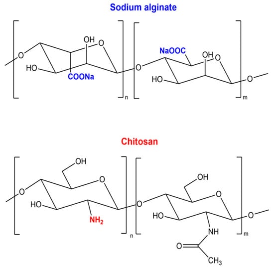 Chemical structures of sodium alginate and chitosan.