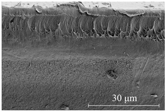 If for cellulose and PAN solutions in NMMO, defective (permeated with vacuoles) structures are formed (Figure 6 and Figure 7), then for mixed systems, on the contrary, a dense monolithic morphology is observed (Figure 8, Figure 10 and Figure 11).