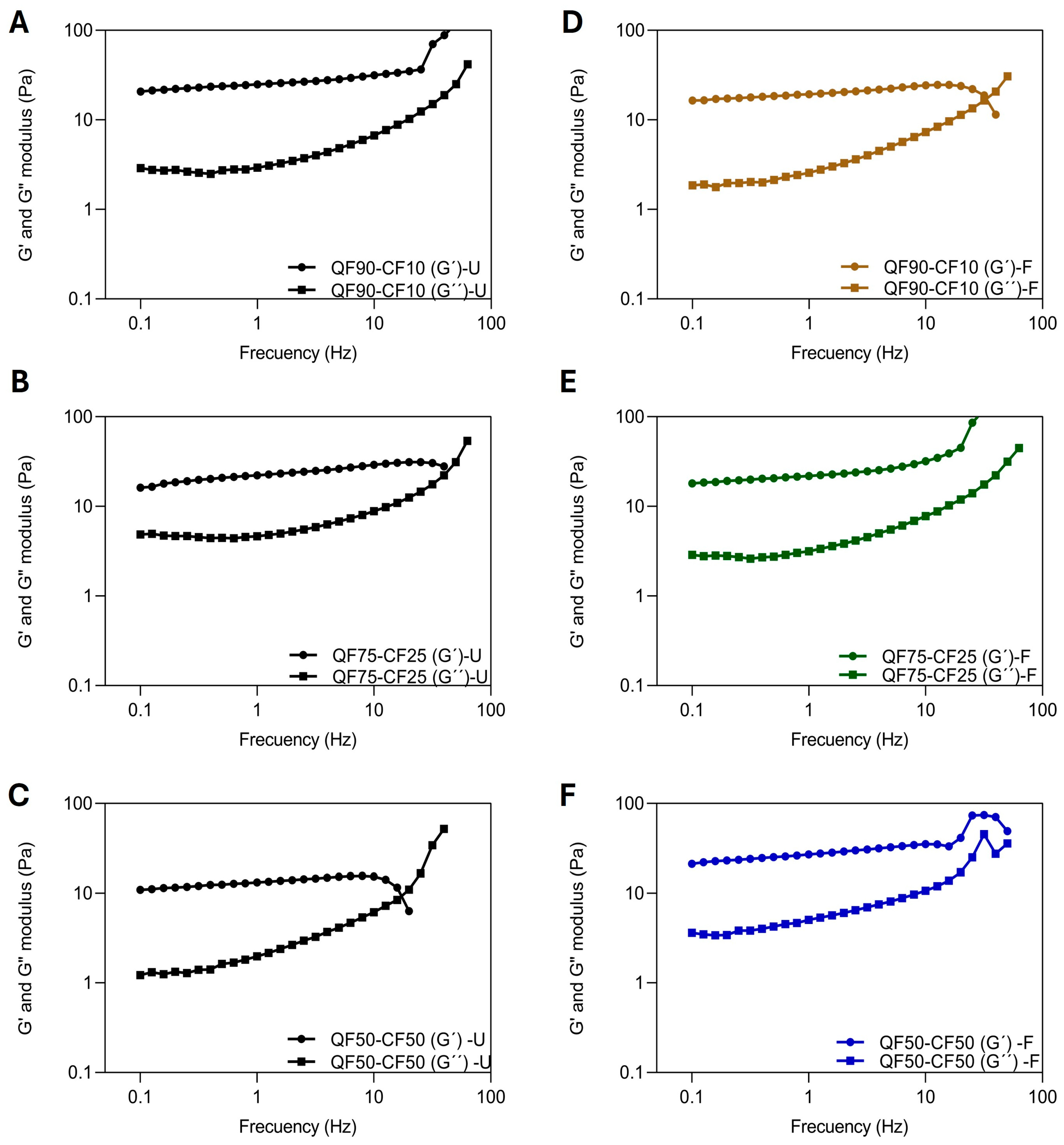 QF50-CF50 | Unfermented | 994 ± 0.0 Aa | 1022 ± 0.0 Aa | 1046 ± 0.0 Aa | 0.65 ± 0.0 Ba | 0.93 ± 0.0 Aa |