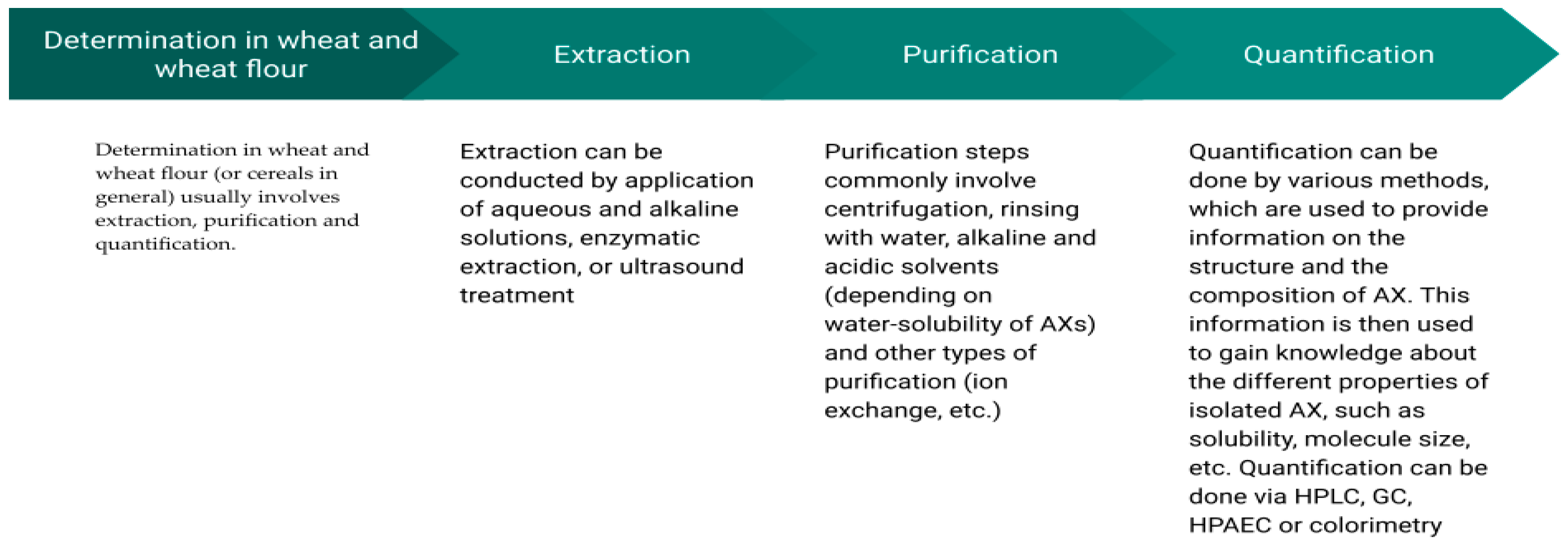 hydrolysis of AX | high-performance anion exchange chromatography (HPAEC) | sodium acetate and acetic acid or tris(hydroxymethyl)-amino-methane and hydrochloric acid (HCl)), treated with HCl and hydrolyzed | [19] |