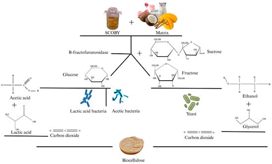 One of the recent trends in microbial polysaccharide production is the use of SCOBY, originally known as the “tea fungus” [4]. As a result of the fermentation process, a biofilm known as bionanocellulose is formed [5].