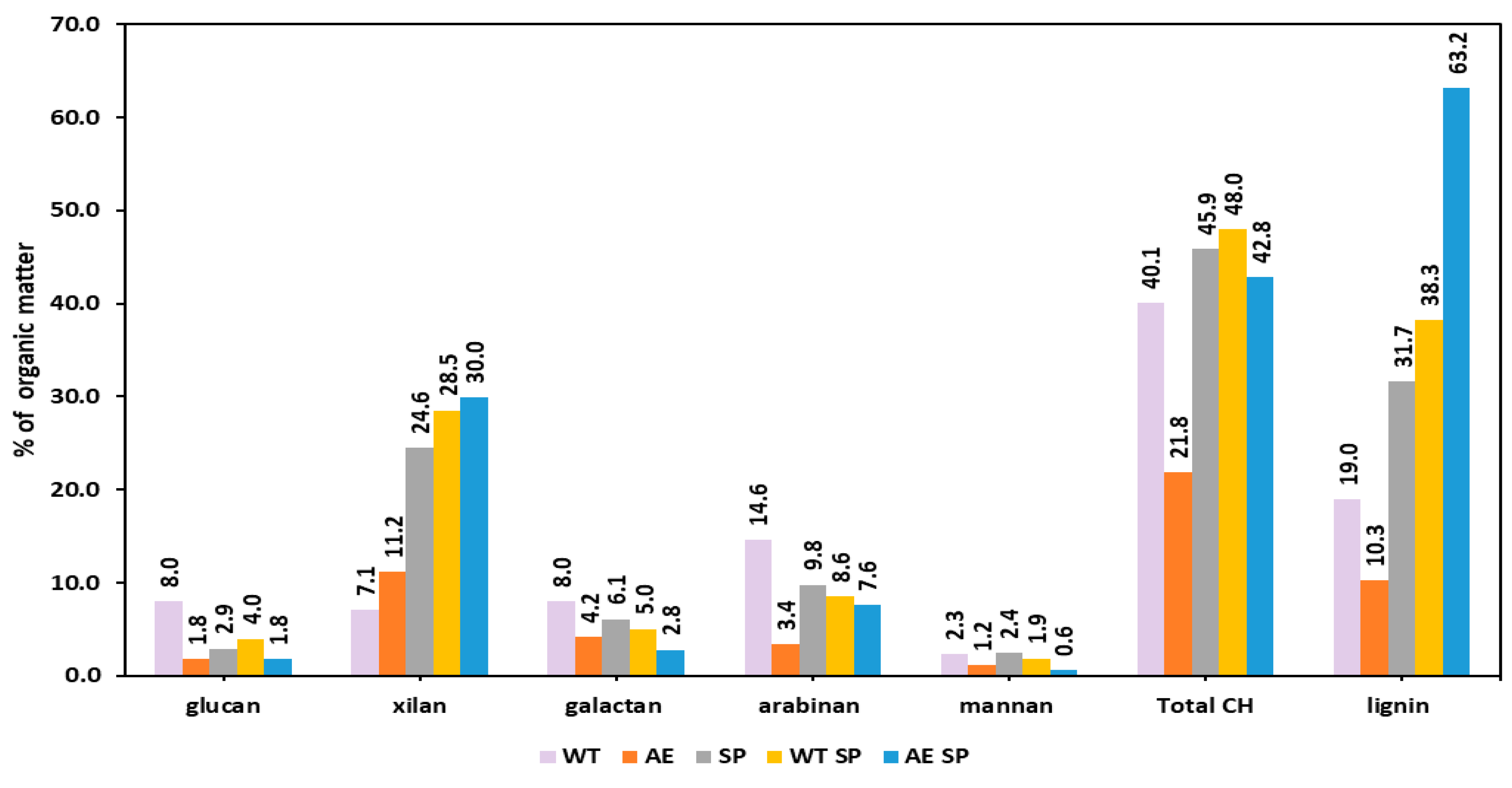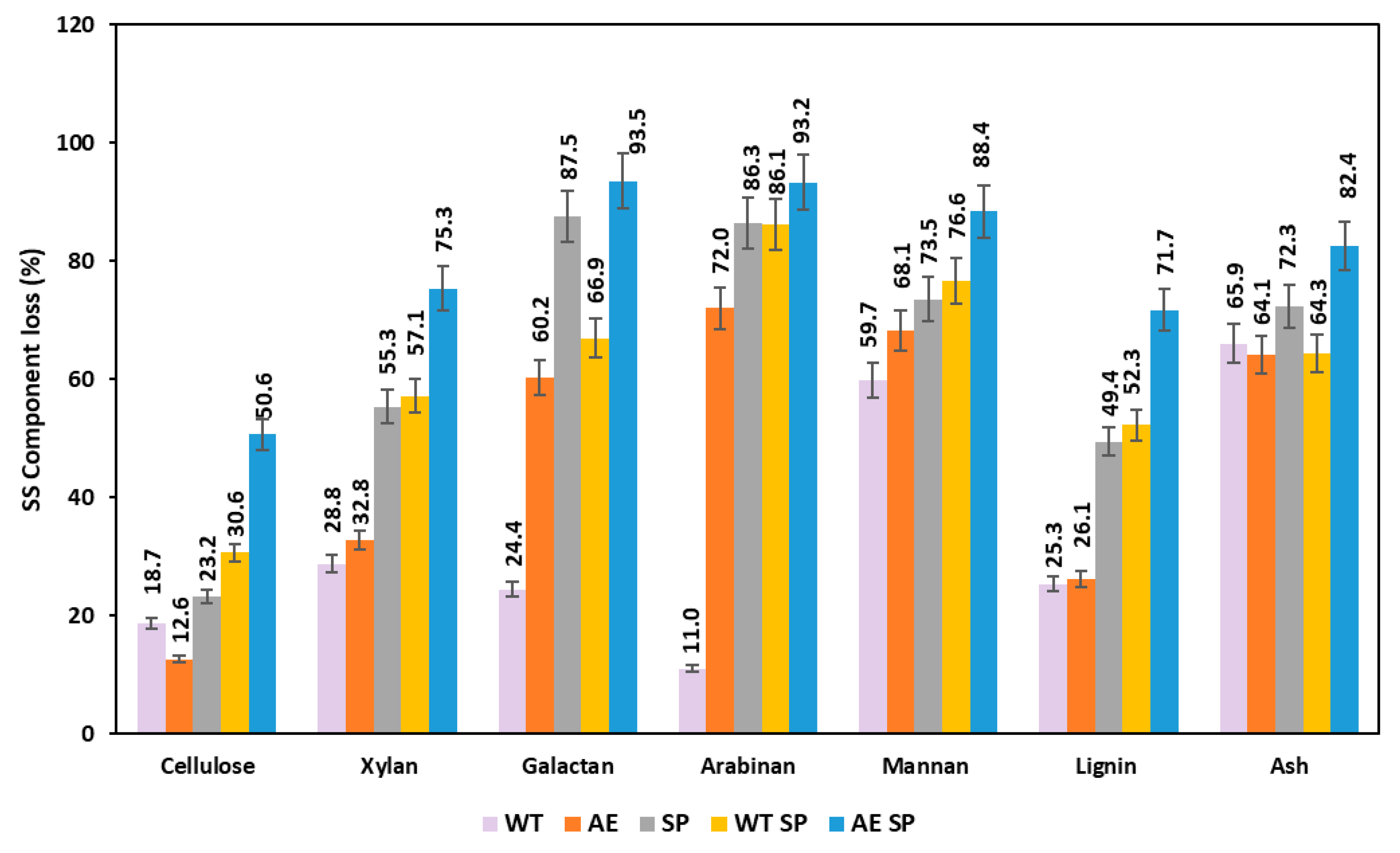 | SS | Glucan (%) | Xylan (%) | Galactan (%) | Arabinan (%) | Mannan (%) | PZ% Total (%) | Lignin (%) |