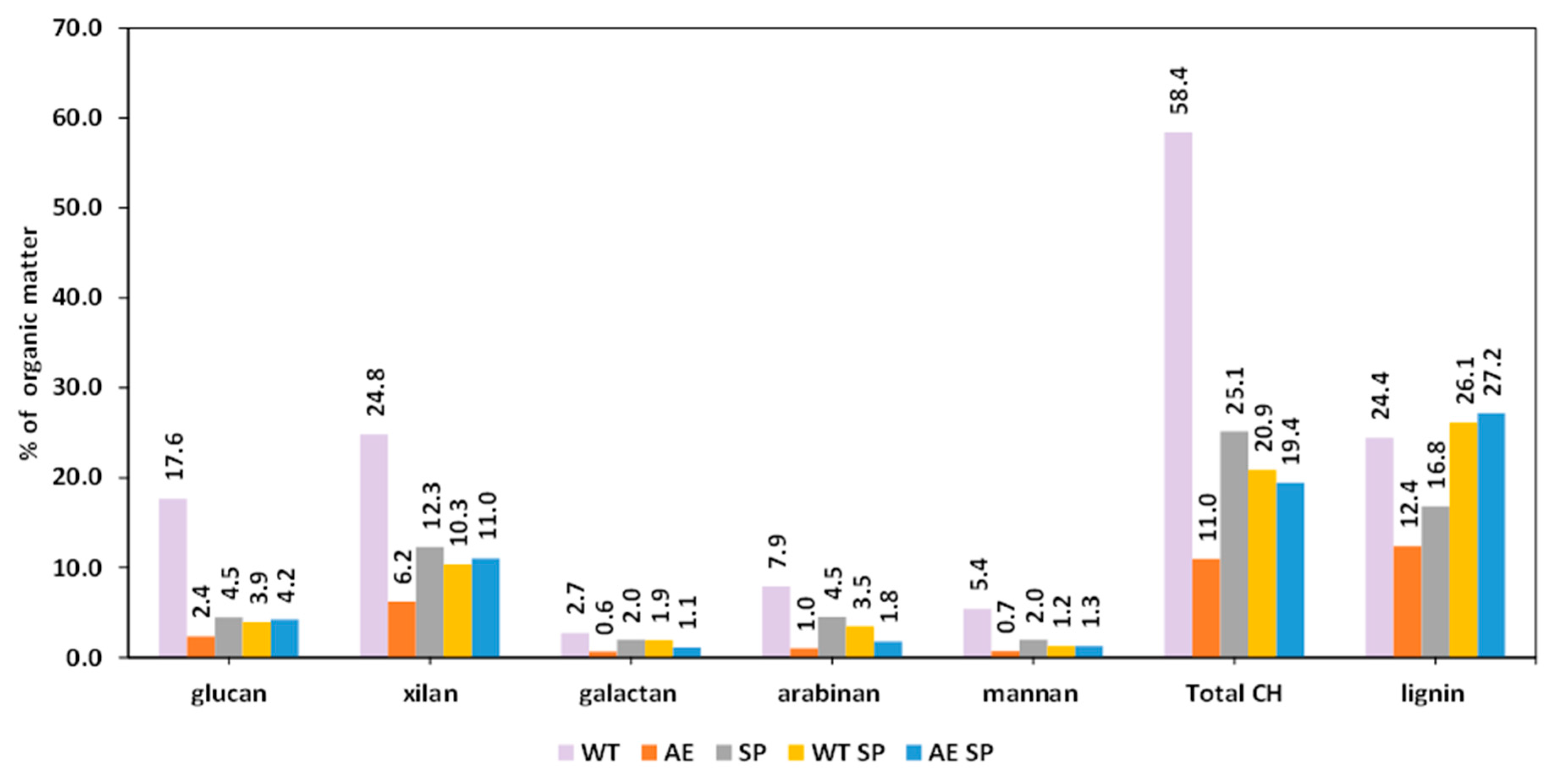 | WT SP | 5.69 | 39.75 | 1.31 | 3.09 | n.d. | 49.85 |