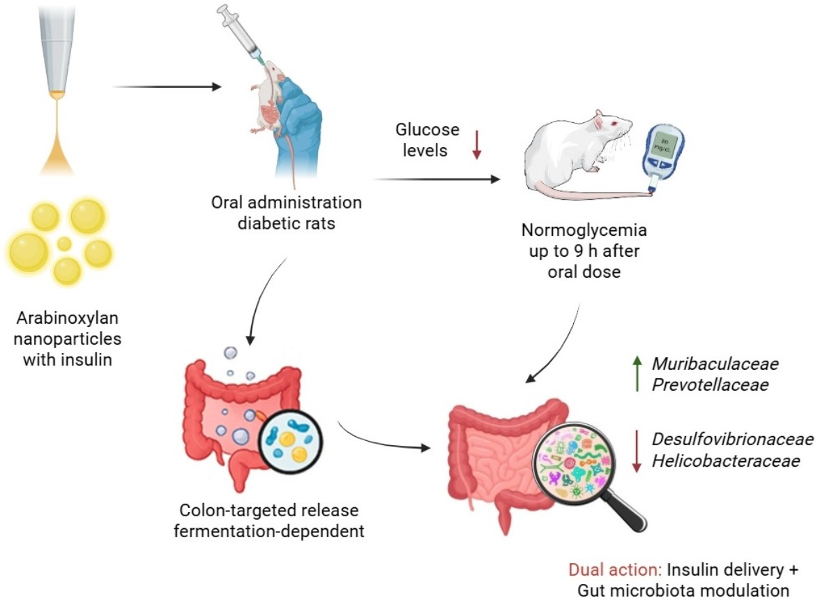 APA StyleDe Anda-Flores, Y. B., Carvajal-Millan, E., Martínez-Porchas, M., Rascon-Chu, A., Martinez-Robinson, K. G., Lizardi Mendoza, J., Tanori-Cordova, J., Martínez-López, A. L., Garibay-Valdez, E., & Mendez-Romero, J. I. (2026). Covalent Arabinoxylans Nanoparticles Enable Oral Insulin Delivery and Gut Microbiota Modulation in Diabetes. Polysaccharides, 7(1), 3. https://doi.org/10.3390/polysaccharides7010003
