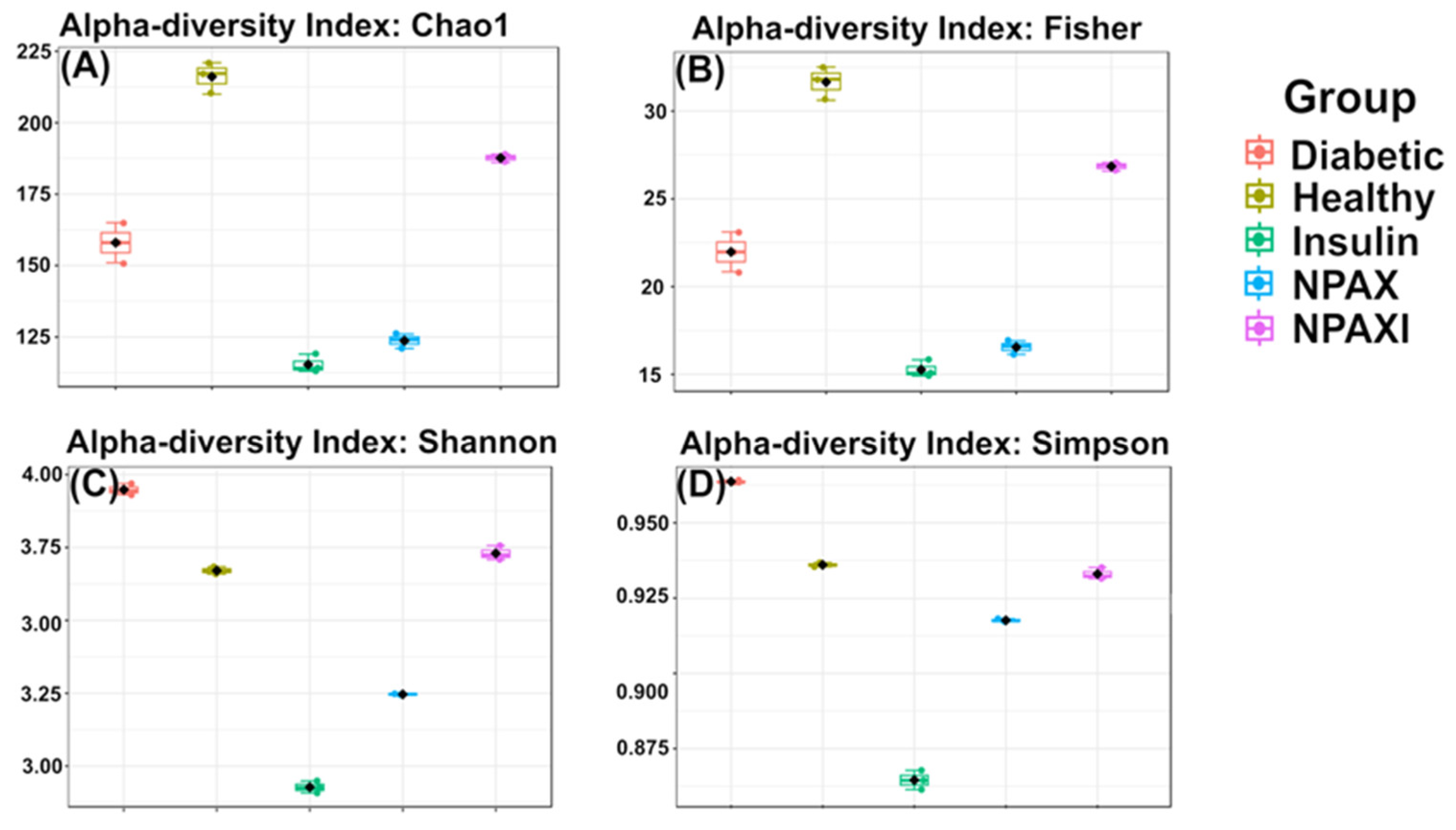 | Pair Comparison | Chao1 | Fisher | Shannon | Simpson |