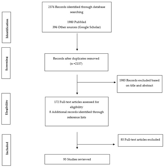 The screening and selection processes were undertaken by AGR and AA. Several hundred titles and abstracts were scanned and selected if they were judged relevant to the treatment of DD in community-based mental health services or partial hospitalization programs. Figure 1 shows the procedure we undertook for the selection of papers. Ultimately, a total of 95 papers were selected (Figure 1).