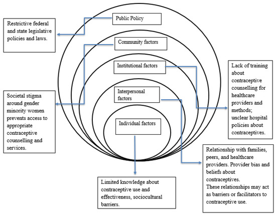 Therefore, this narrative literature review aims to investigate the current perspective of contraceptive use in the US using the social-ecological model (SEM). Articles were extracted unsystematically from PubMed and Google Scholar using key terms specific to each section. Notably, we used the “OR” and “AND” Boolean combinations iteratively to search for relevant articles published between 2010 and 2021. Keywords used central to each section included but were not limited to “sexual health,” “reproductive health,” “contracept,” “barriers,” and “facilitators.”