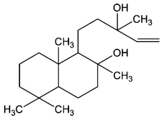 - Kouzi, S.A.; McChesney, J.D.; Walker, L.A. Identification of four biliary metabolites of the diterpene sclareol in the laboratory rat. Xenobiotica. 1993, 23, 621–632. [Google Scholar] [CrossRef] [PubMed]