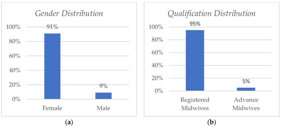 Gender (a) and qualification distribution (b).