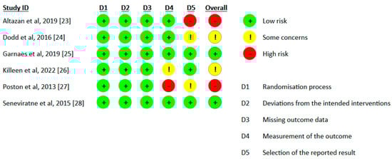 The results of version 2 of the Cochrane tool for assessing the risk of bias in randomized clinical trials (RoB2) [29] are shown in Figure 2.