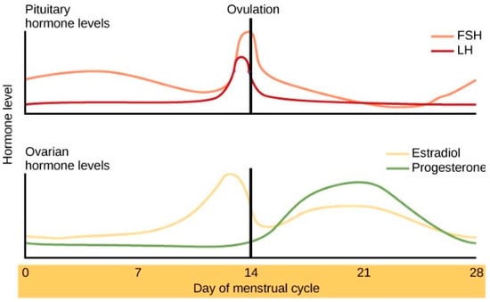 - Reed, B.G.; Carr, B.R. The Normal Menstrual Cycle and the Control of Ovulation. In Endotext; Feingold, K.R., Ahmed, S.F., Anawalt, B., Blackman, M.R., Boyce, A., Chrousos, G., Corpas, E., de Herder, W.W., Dhatariya, K., Dungan, K., et al., Eds.; MDText.com, Inc.: South Dartmouth, MA, USA, 2018. [Google Scholar]