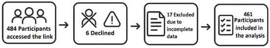 A total of 461 women residing in the Northern Borders Province of Saudi Arabia participated in the study, yielding a high response rate and ensuring a robust representation of the target population (Figure 1).