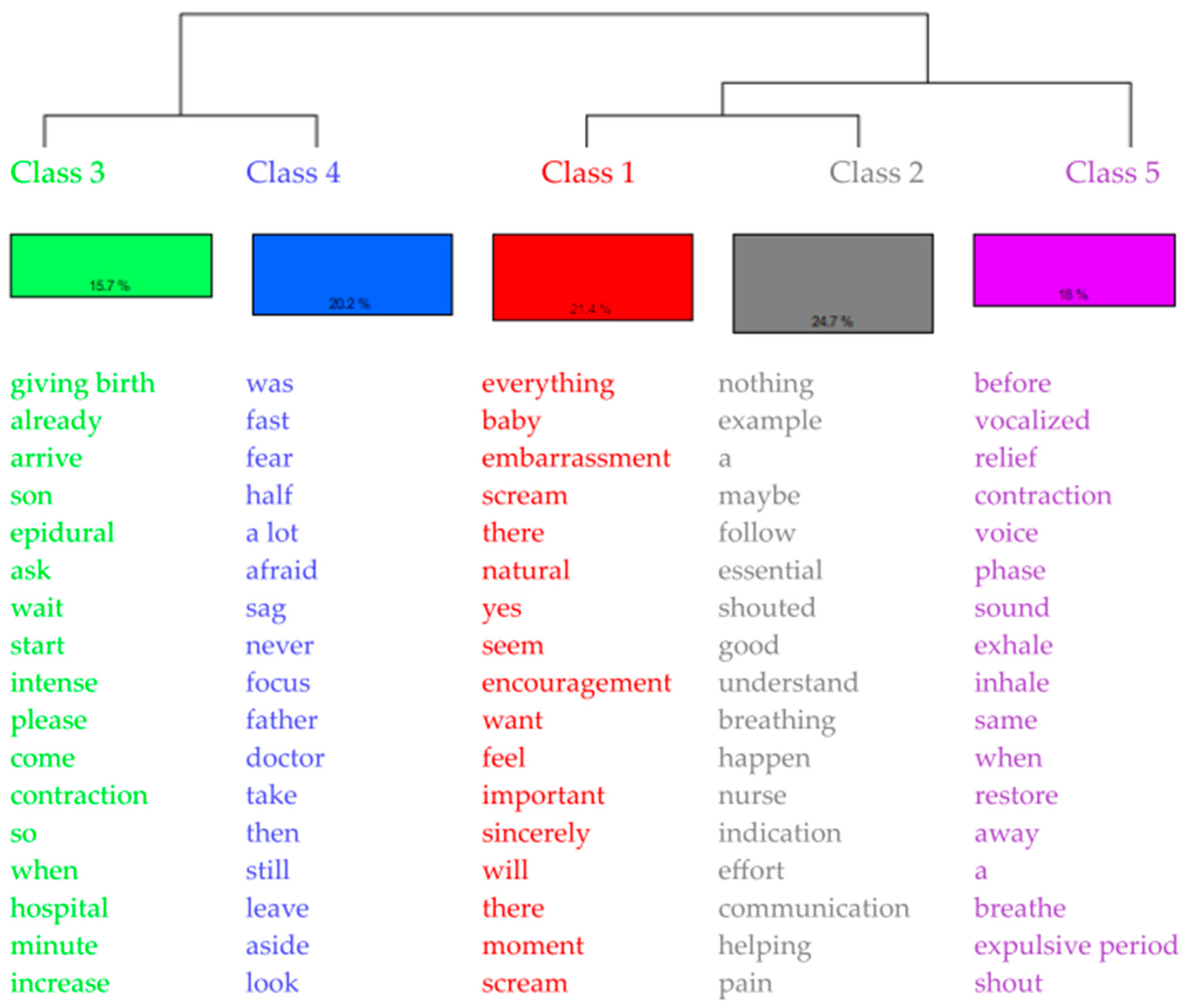 | Class 2 | Functionality of vocalization during labor | 44 | 24.72 |